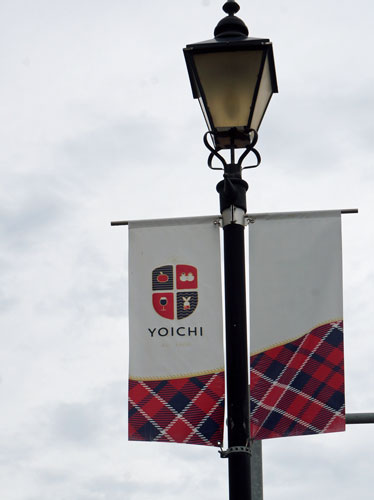下の写真は、ツアーの待合室に飾ってあった余市タータングッズ。
