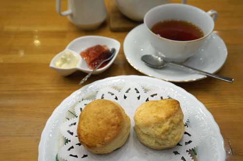 温かいまま出てきて、食欲をそそります。私の好きなボソッとした感じの小ぶりのスコーン。お持ち帰りもできるようです。